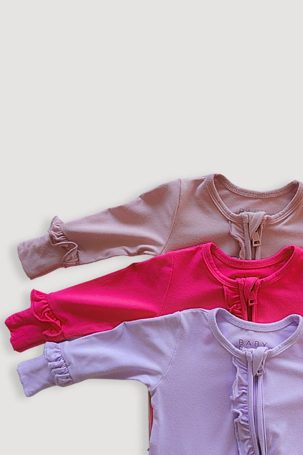 The premium thick bamboo viscose fabric used in our footies is what sets them apart. This fabric is known for its exceptional softness and durability. It provides a gentle touch against your baby's delicate skin, ensuring a comfortable and cozy sleep experience.